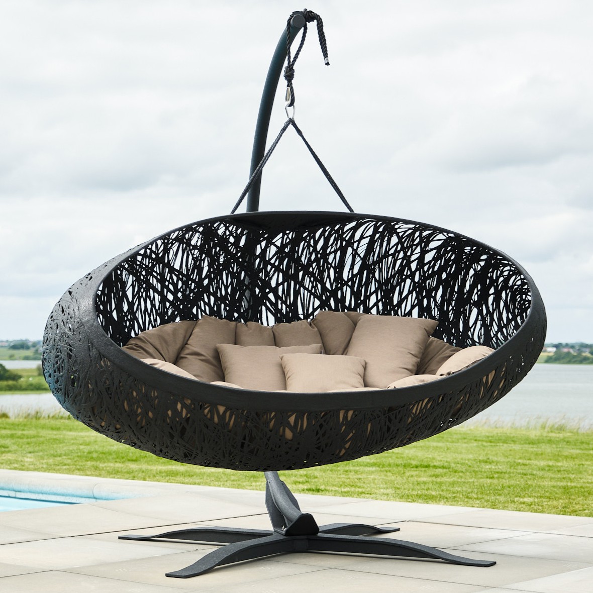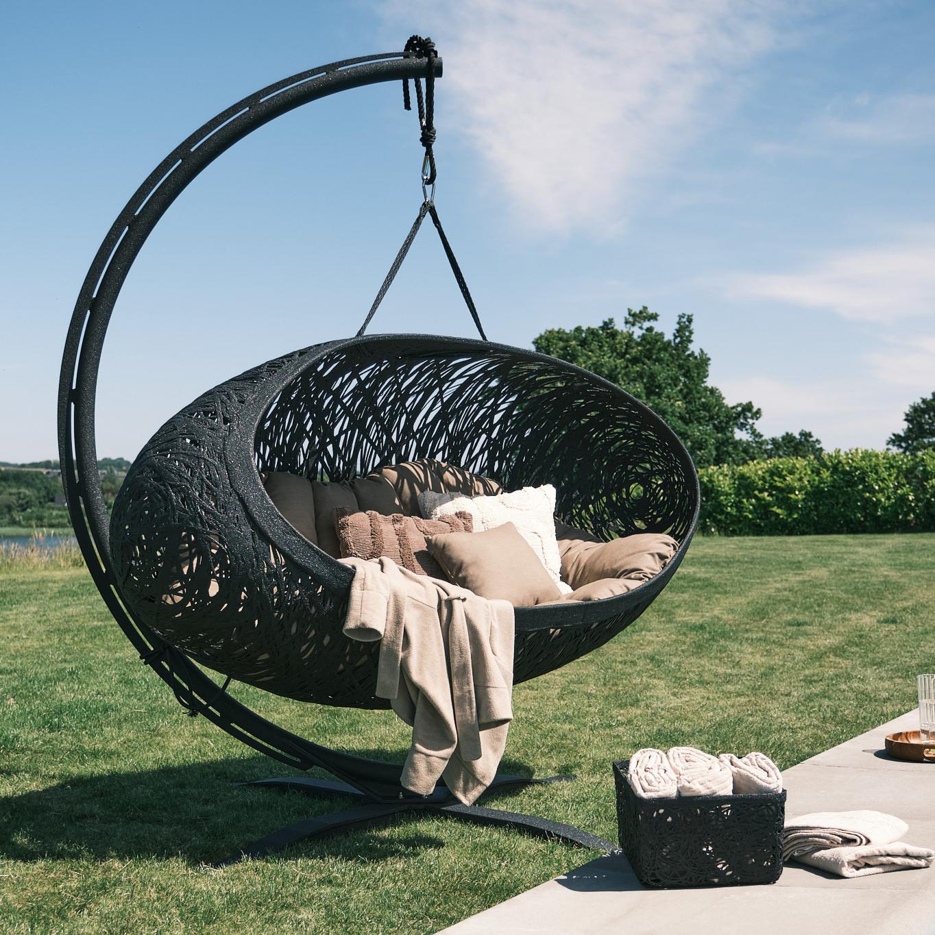 S’intégrant parfaitement à son environnement naturel, le Bios Alpha est un magnifique meuble. Ce luxueux fauteuil suspendu, mesurant 235 cm de long, offre un confort exceptionnel pour tous.