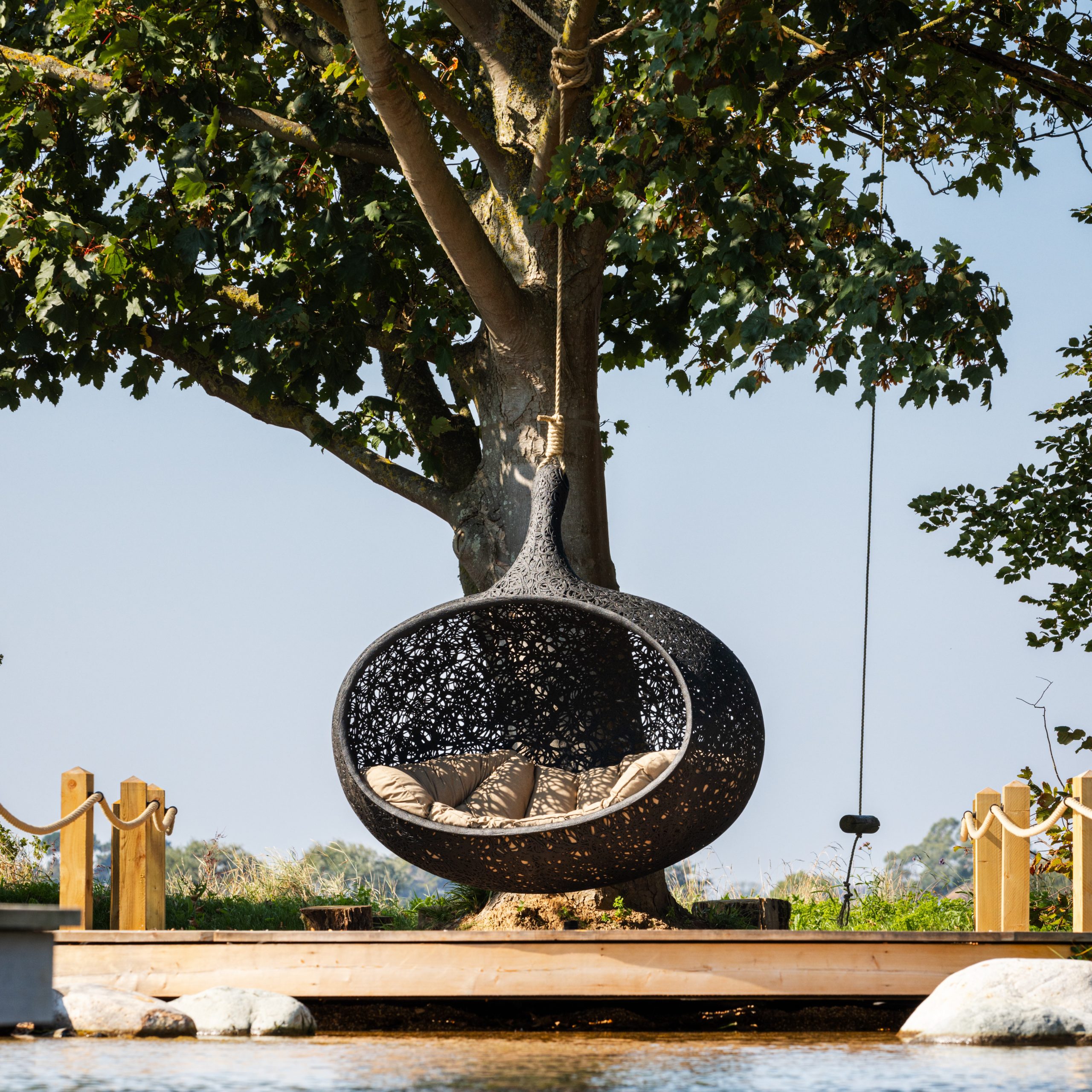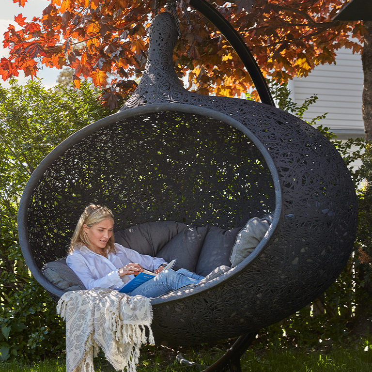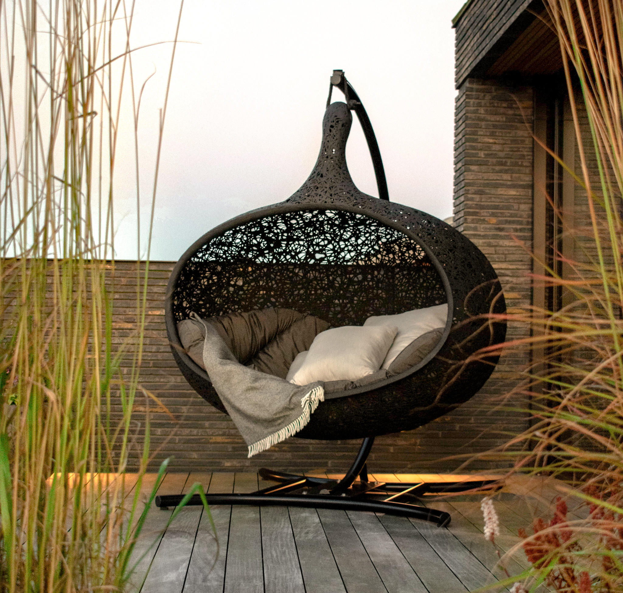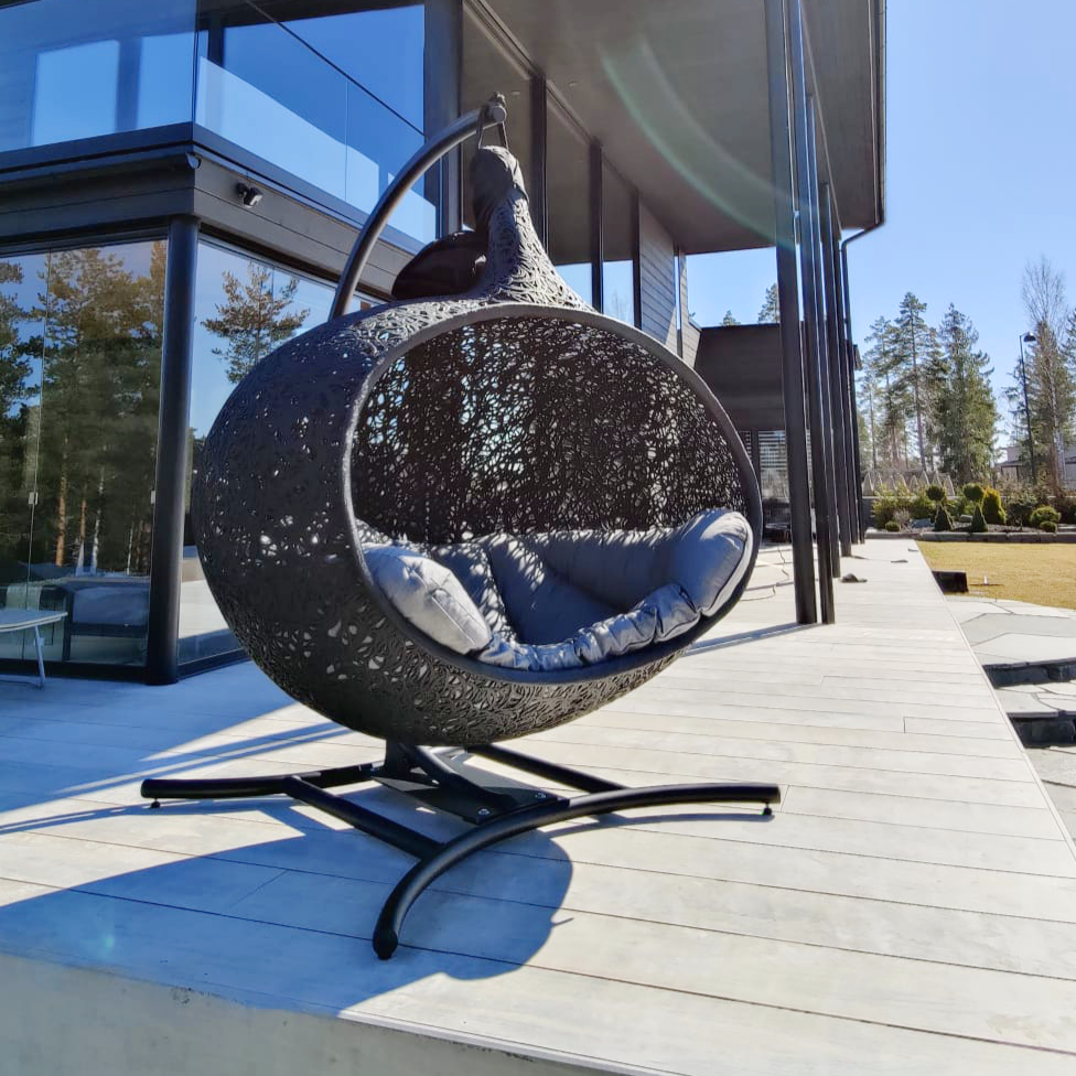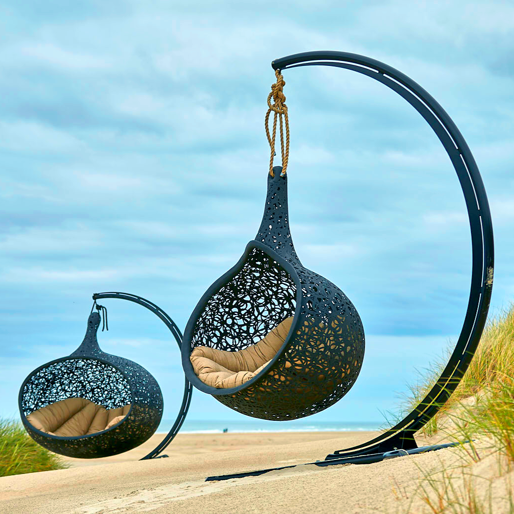 Bios Hide est une pièce véritablement exceptionnelle, offrant un refuge spacieux et confortable pour 2 à 3 personnes. Se blottir à deux ou à trois ou s’allonger tout seul, rêver, profiter de la fin du travail, écouter de la musique, écouter la nature ou simplement se détendre, à vous de décider. Quelques minutes de repos dans le fauteuil cocon à la forme ergonomique vous permettront d’oublier le stress du quotidien et de respirer enfin profondément. Cette chaise longue suspendue élégante doit son extrême stabilité et son poids relativement léger au basalte.