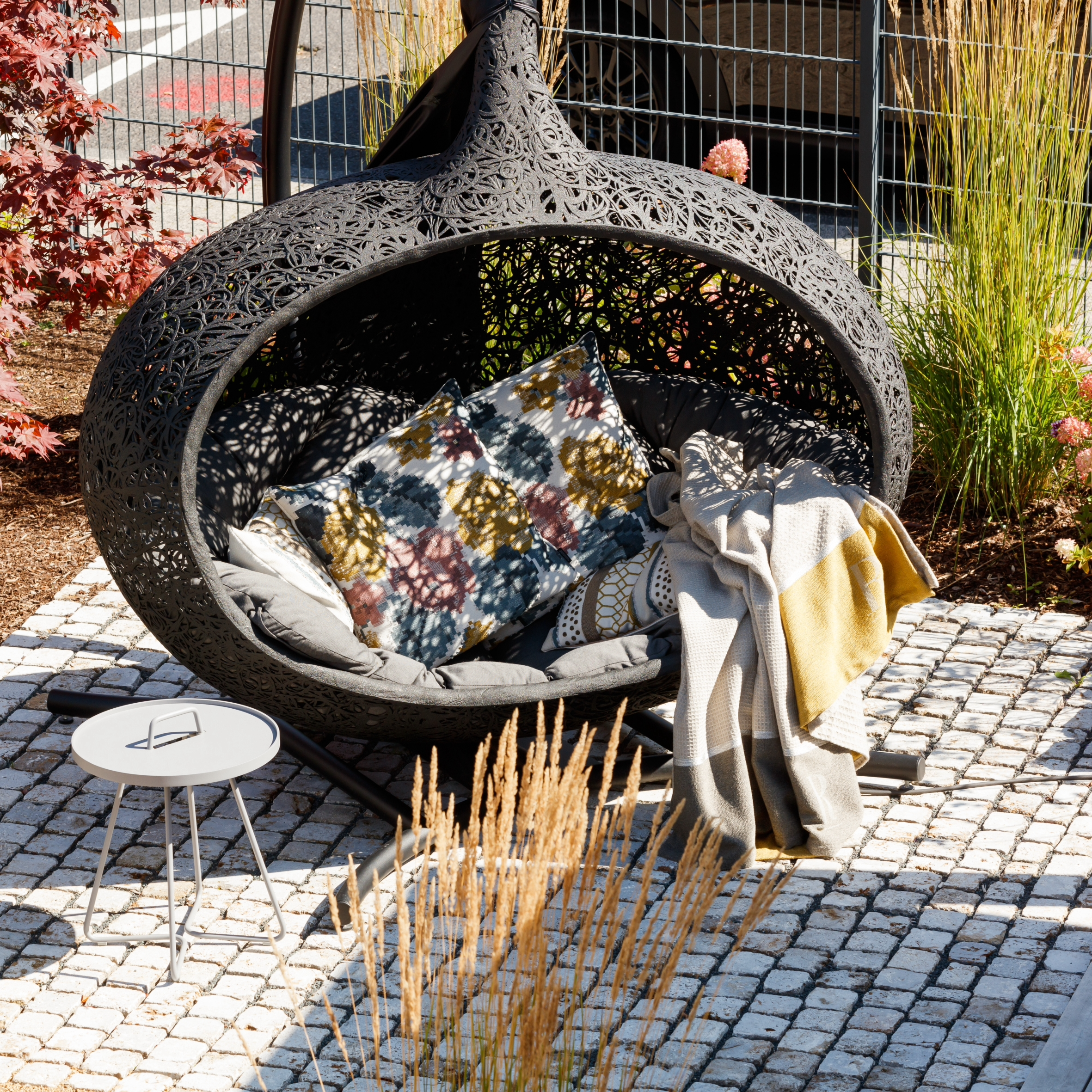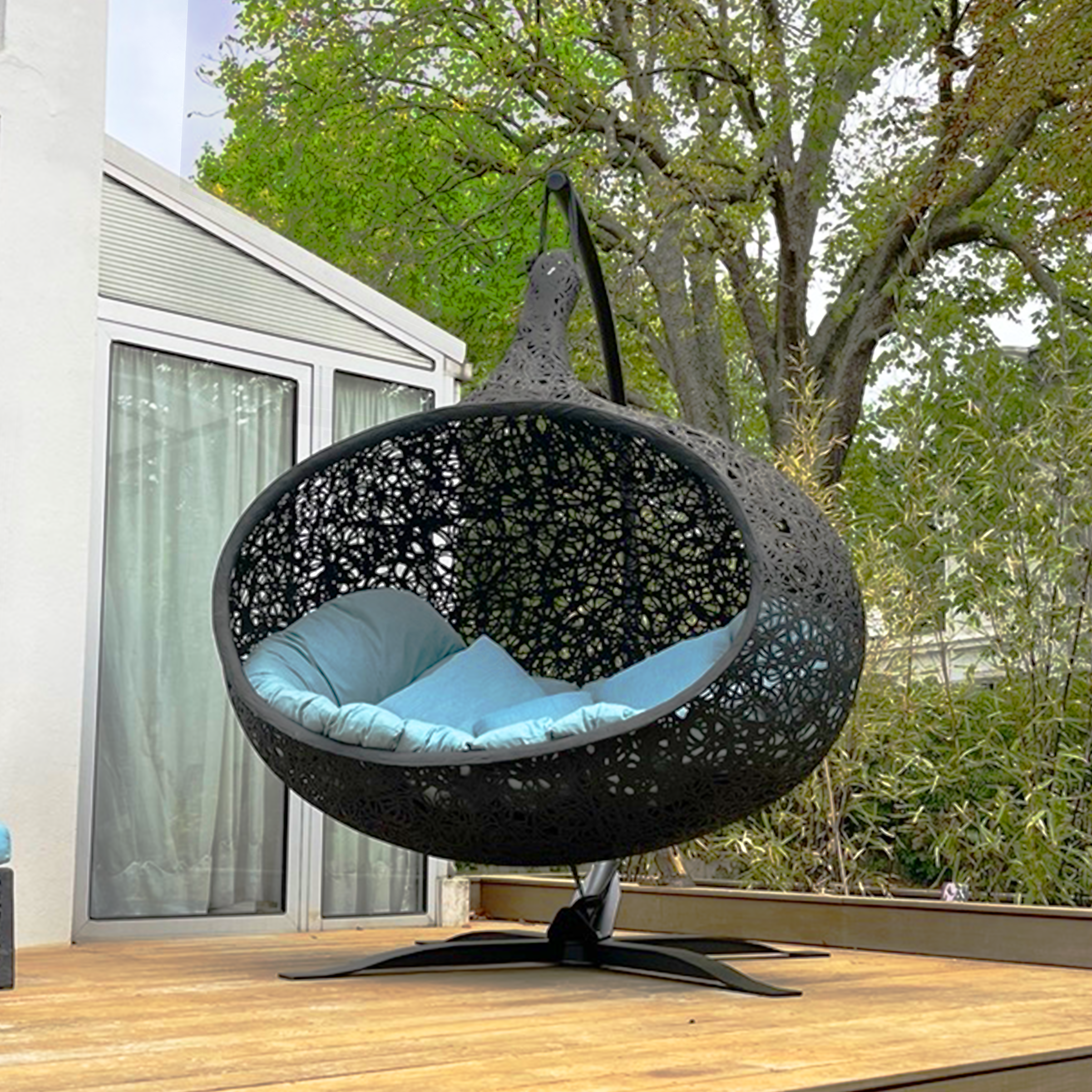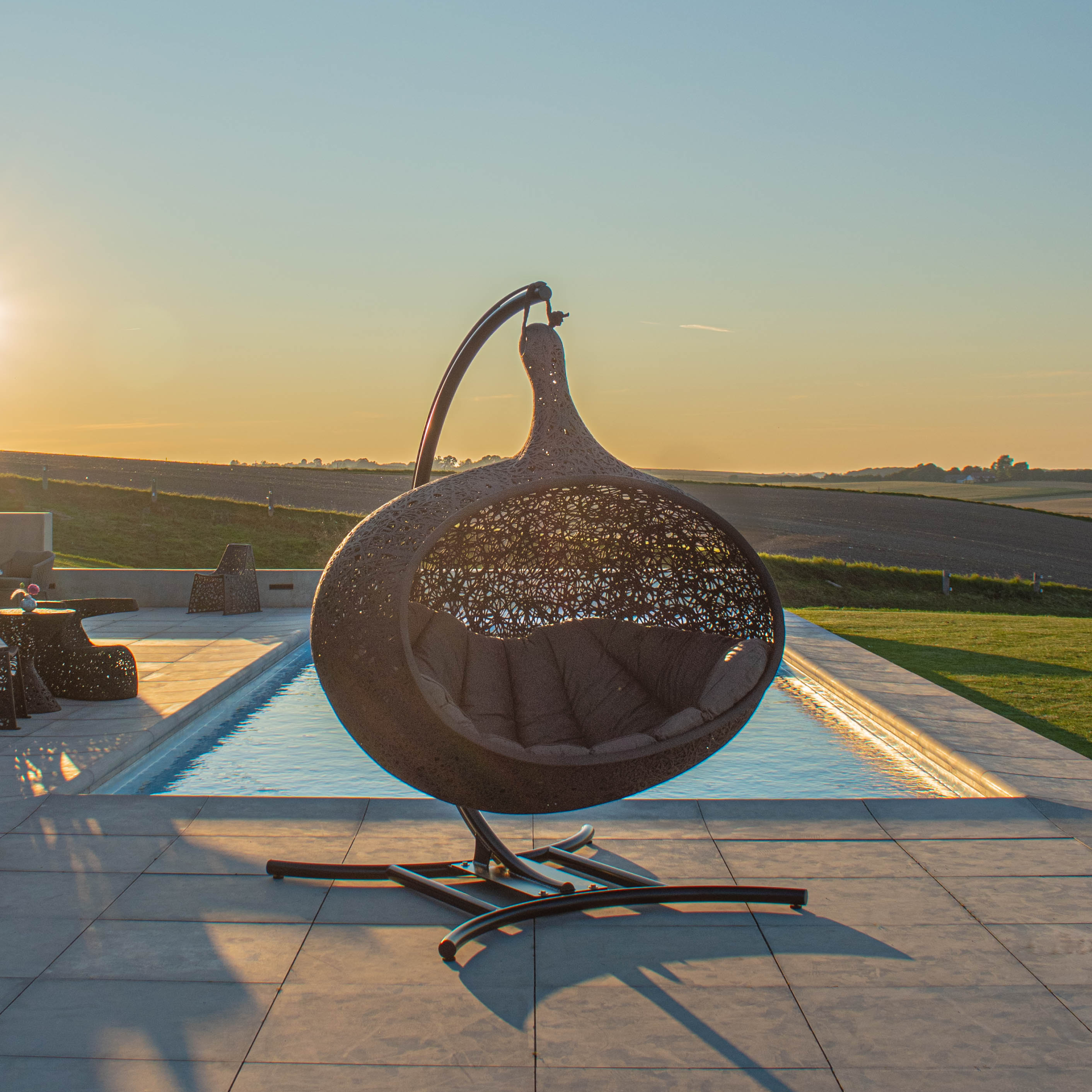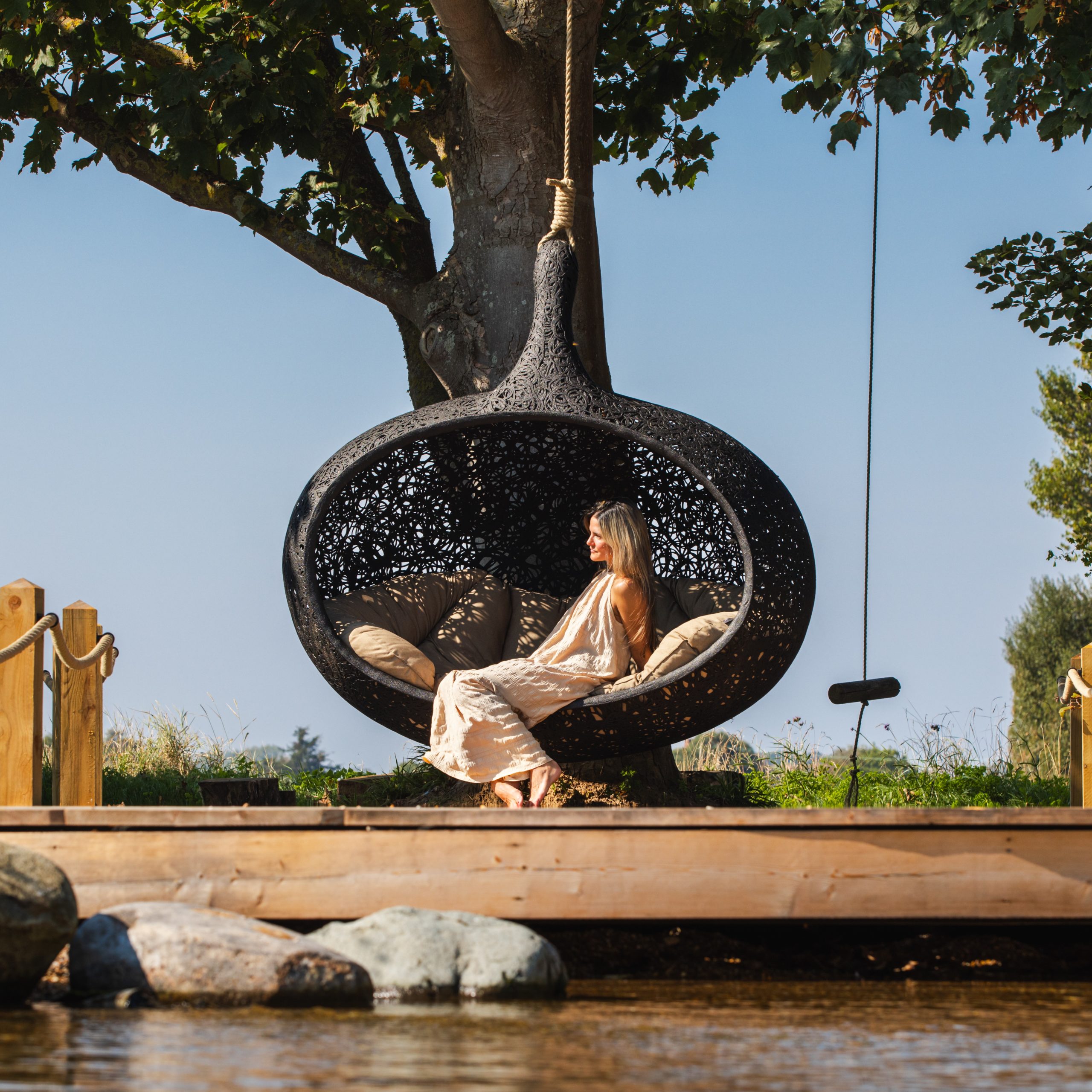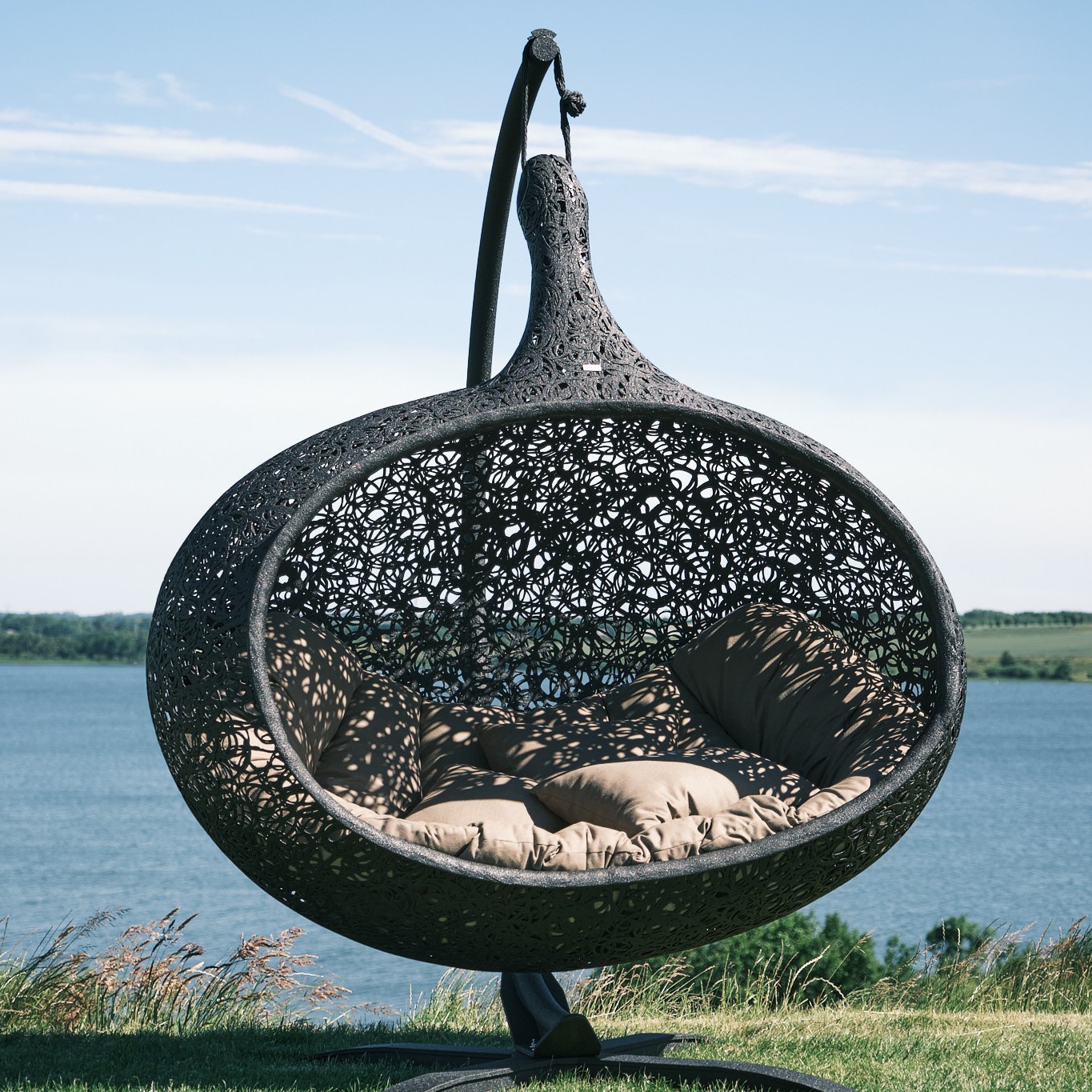 Bios Hide est une pièce véritablement exceptionnelle, offrant un refuge spacieux et confortable pour 2 à 3 personnes. Se blottir à deux ou à trois ou s’allonger tout seul, rêver, profiter de la fin du travail, écouter de la musique, écouter la nature ou simplement se détendre, à vous de décider. Quelques minutes de repos dans le fauteuil cocon à la forme ergonomique vous permettront d’oublier le stress du quotidien et de respirer enfin profondément. Cette chaise longue suspendue élégante doit son extrême stabilité et son poids relativement léger au basalte.