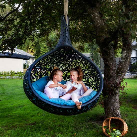 Le Bios Nest est parfait pour un adulte ou deux enfants. Son design unique crée une atmosphère douillette, semblable à un cocon, le rendant incroyablement confortable et idéal pour des moments de détente.