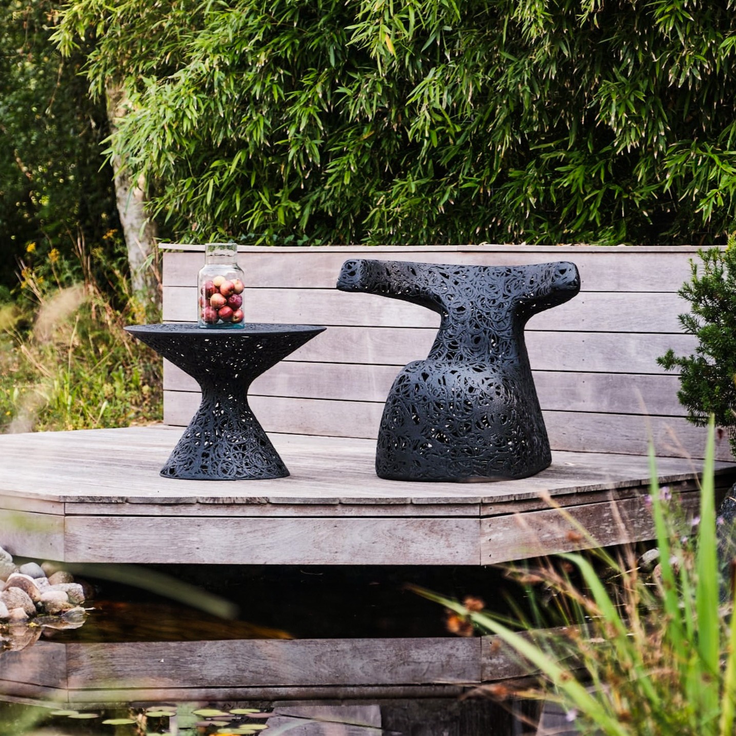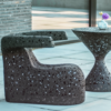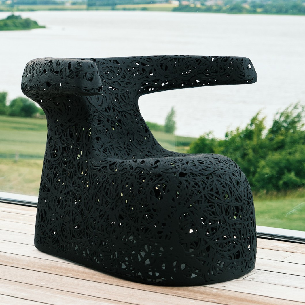 La Hug est une chaise ergonomique pour se détendre dans le jardin et ressemble un peu à une limace noire.