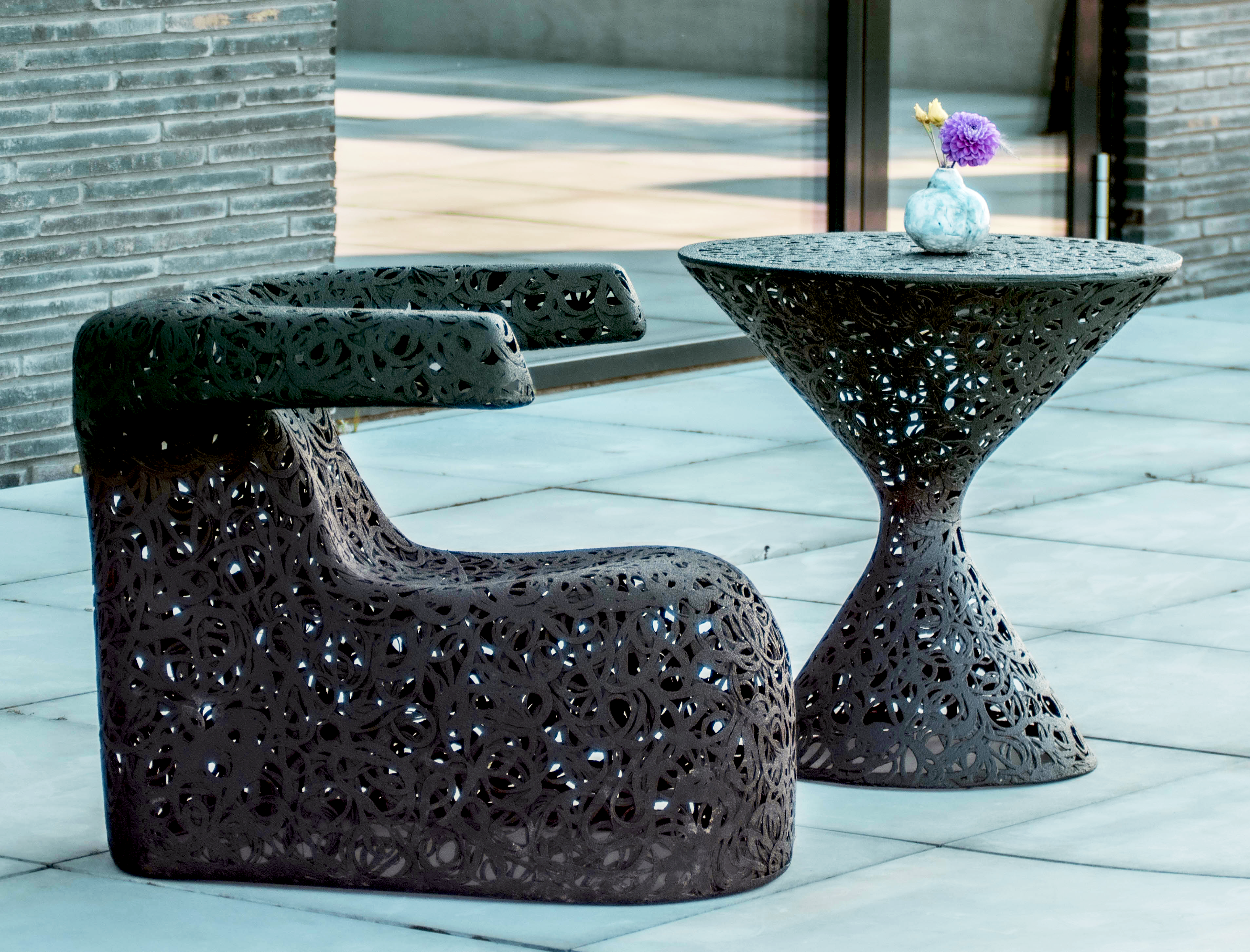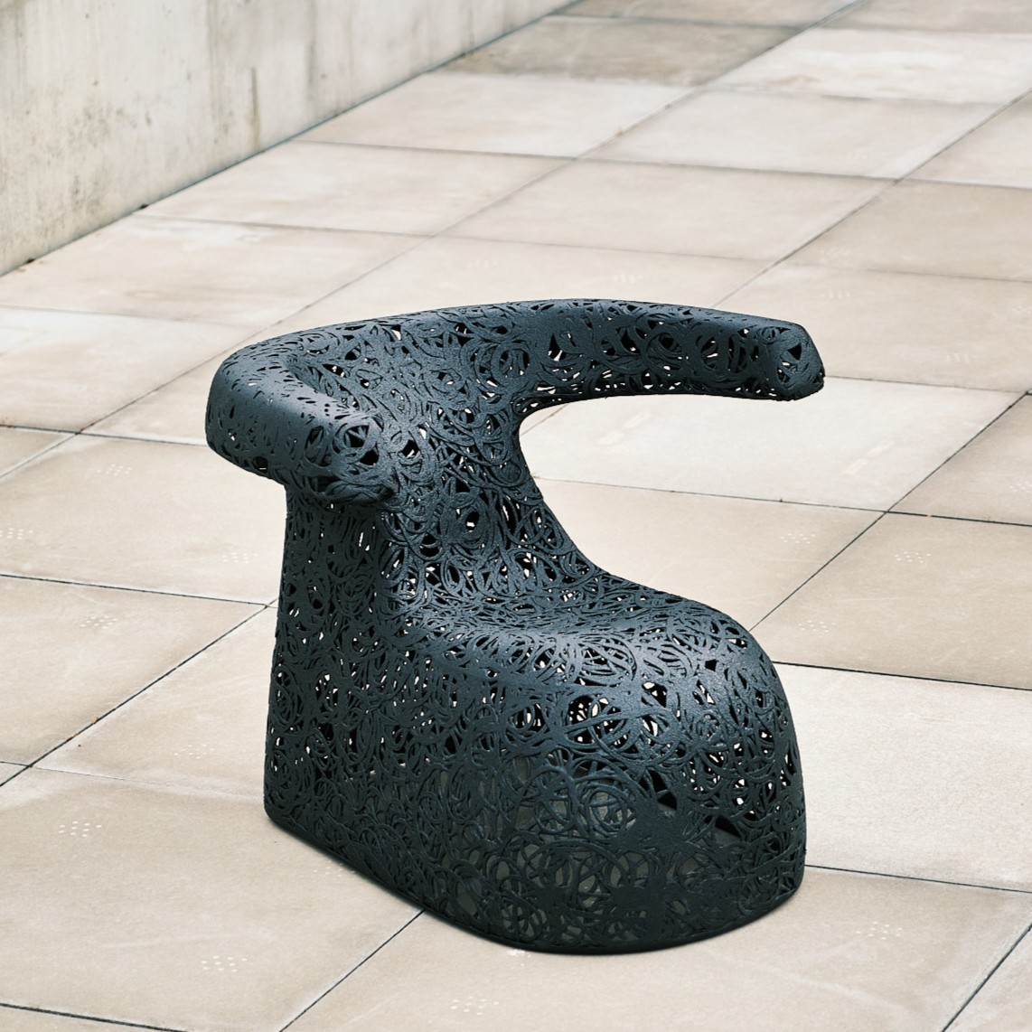 La chaise doit son extrême stabilité et son poids relativement léger au basalte.