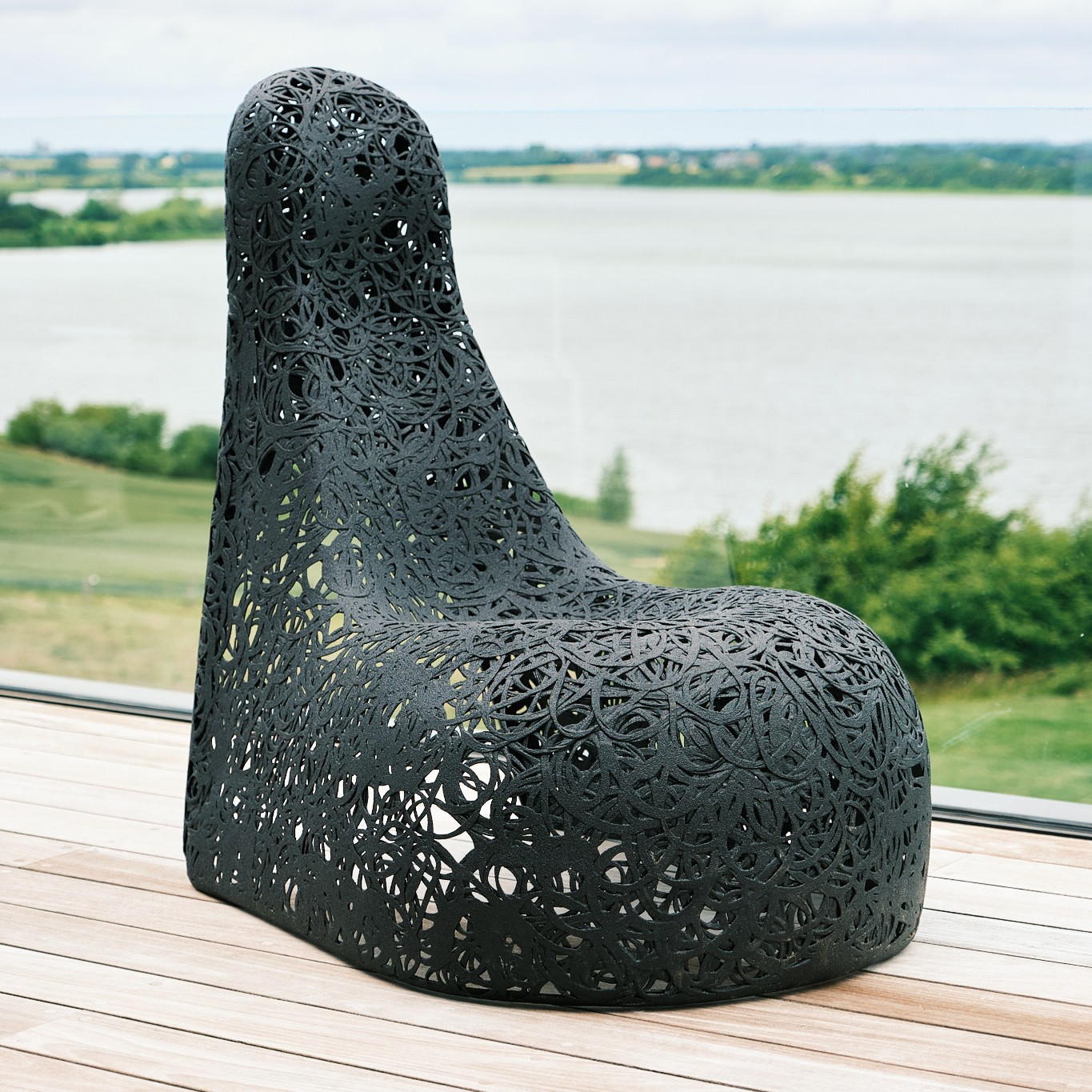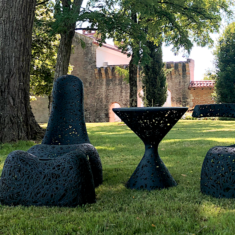 La chaise doit son extrême stabilité et son poids relativement léger au basalte.