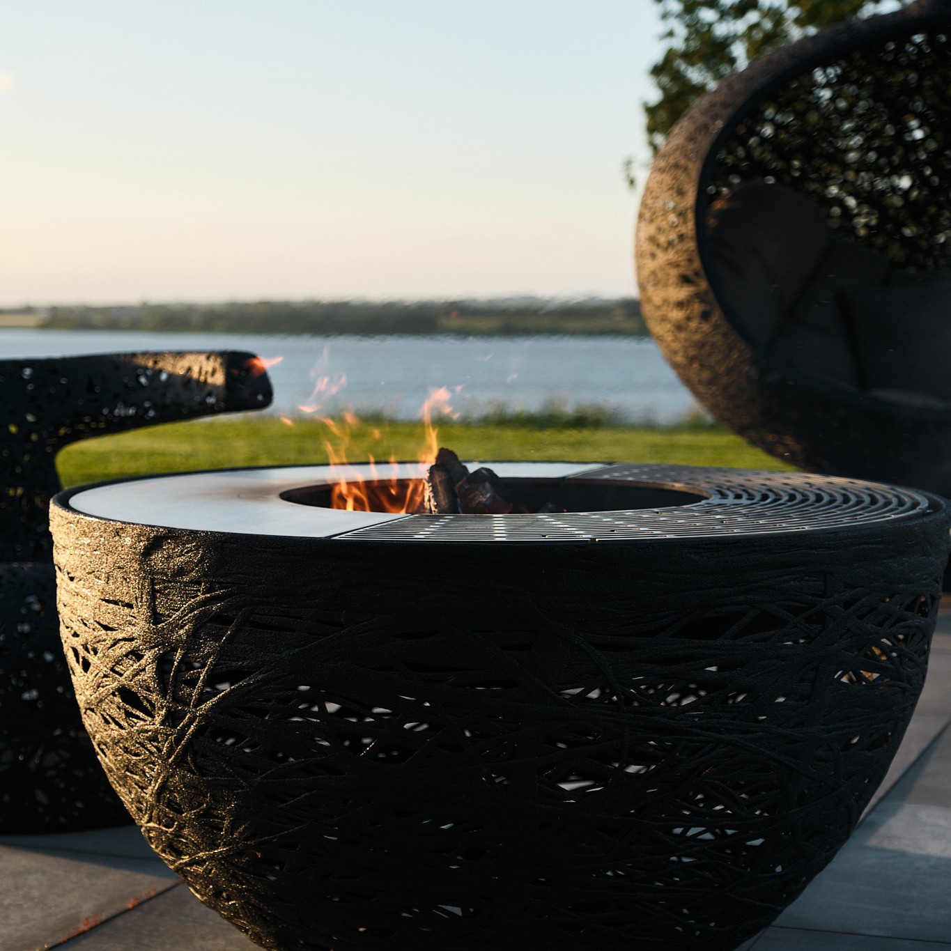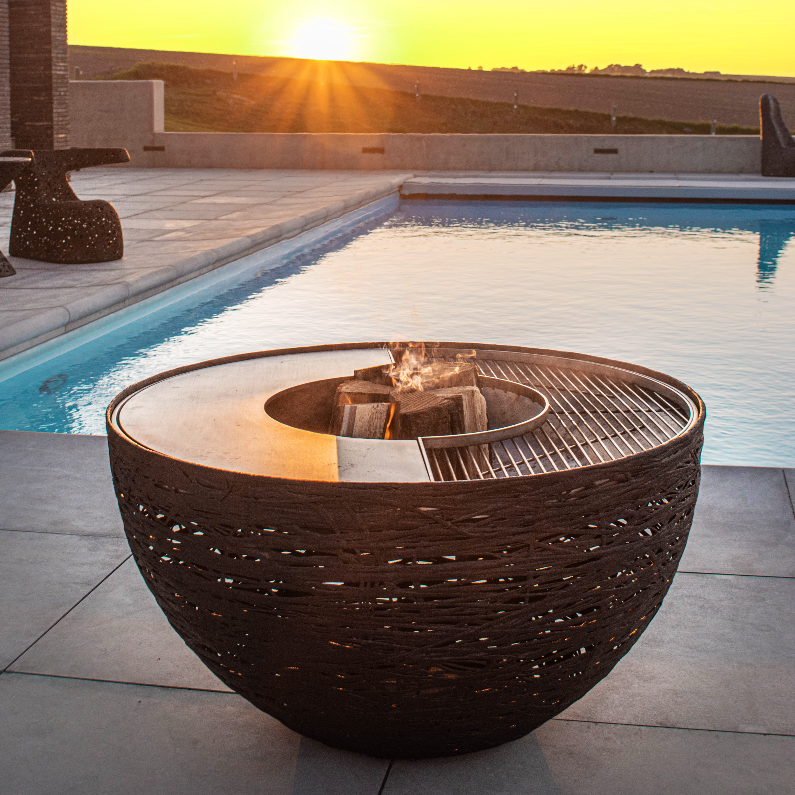 Découvrez le Lava Nest Firepit, une fusion saisissante d’acier et de pierre de lave qui allie style et fonctionnalité pour sublimer votre espace extérieur.
